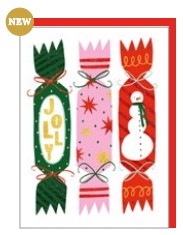 2-part Christmas card made of high-quality cardboard. The image shows cheerfully colorful candies on a white background, and the text "Jolly". The card has gold foil and embossed details, is empty inside and includes a red envelope. Size 105 x 140 mm. Design: The Art File.
