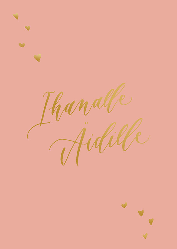 Domestic 2-part card, high-quality cardboard, includes an envelope. On the cover the text "For a wonderful mother", empty inside. Gold foiled details on the card. Size 105 x 148 mm. Design: Aini Mäensivu // Calligraphy studio. Printed in Finland.