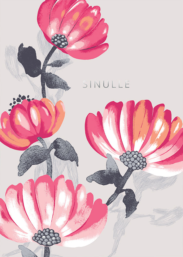 High-quality domestic 2-part card. Picture shows red flowers and text: "For you". foiled details, no text inside. Size: 105 x 148 mm. Includes envelope. Design: Pentik.