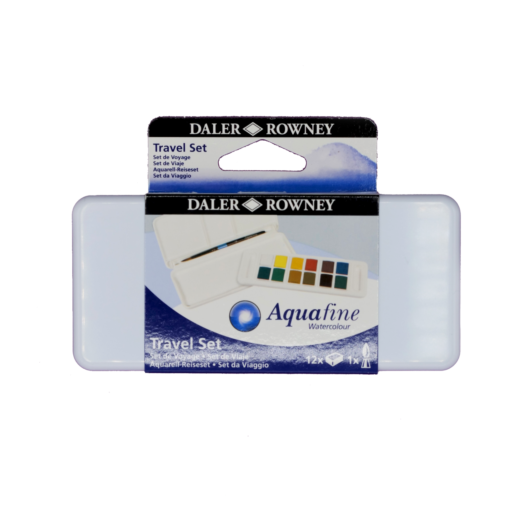 The pocket-sized Aquafine Travel Set contains 12 half-bottles of Aquafine watercolours and a brush. The box can be used as a convenient painting palette. Aquafine watercolours are made from a range of high-quality pigments, perfectly ground for optimum performance and control. The Aquafine range of colours provides rich, free-flowing, transparent colour with excellent shade retention and workability. All colours can be used to create beautiful and delicate washes.