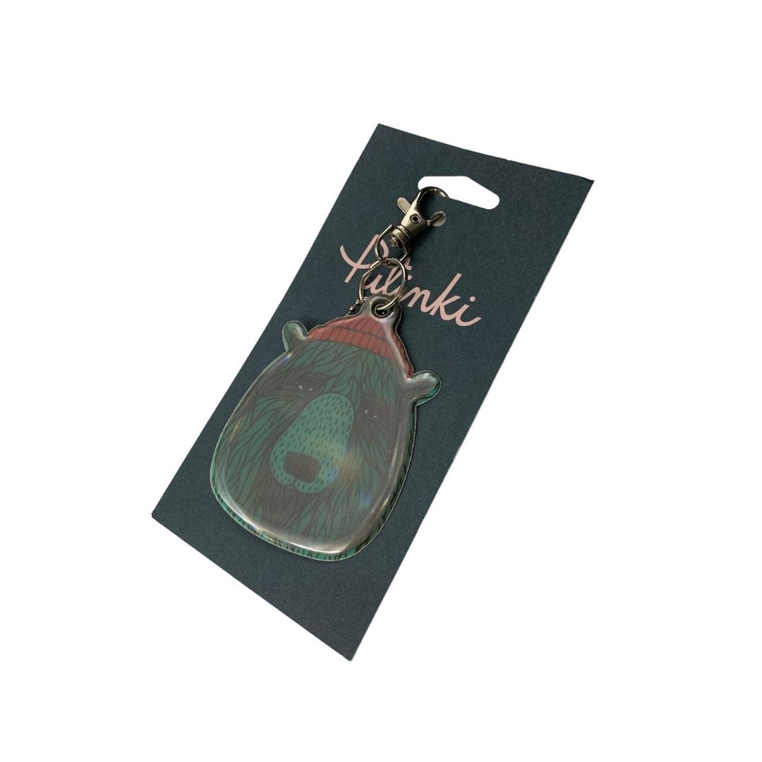 Finnish design reflector with the image of a sea bear. Includes parrot lock and ball chain. The reflector is CE (EN 13356) marked. Type-tested, the reflector meets the EU Personal Protective Equipment Regulation 2016/425. Contains small parts, not suitable for children under 3 years old. Size: 7 x 9 cm. Ball chain: 7 cm. Design: Mira Mallius. Made in Finland.
