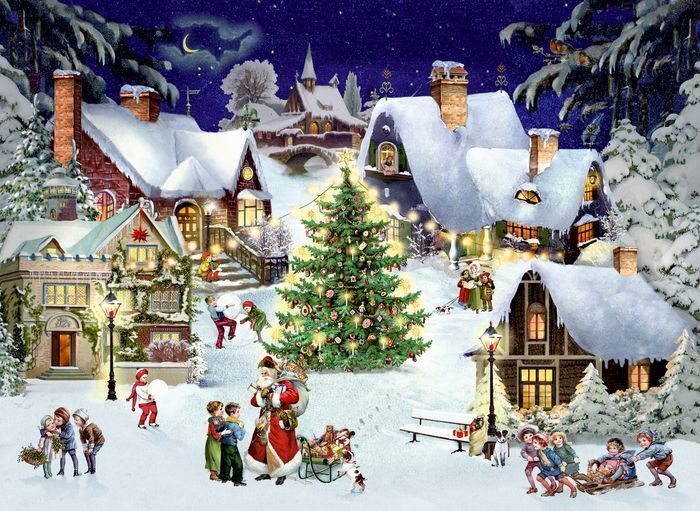 A traditional and nostalgic German Advent calendar in A4 size. The atmospheric picture of this Christmas calendar creates a traditional Christmas atmosphere and has glittered details. 24 doors, behind which Christmas things appear.