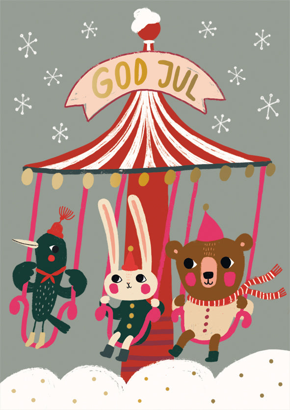 Christmas card Mira Mallius - God jul, animals in the carousel