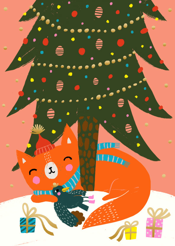 Christmas card Mira Mallius - Fox at the foot of the fir tree