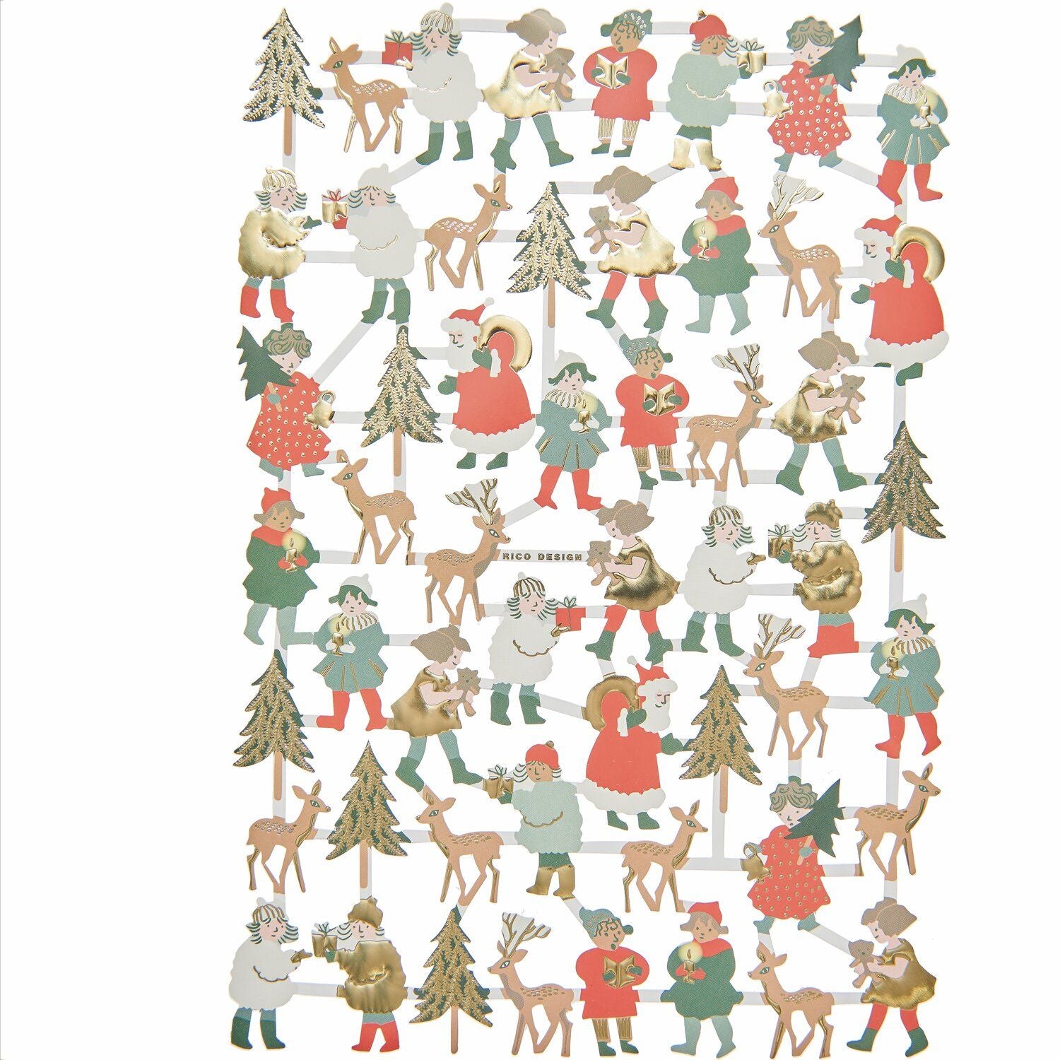 Glossy photo sheet with Christmas people, Santa Claus, Christmas trees and deer, 50 pieces in total. Sheet size 17 x 25 cm. Rico Design, Paper Poetry.