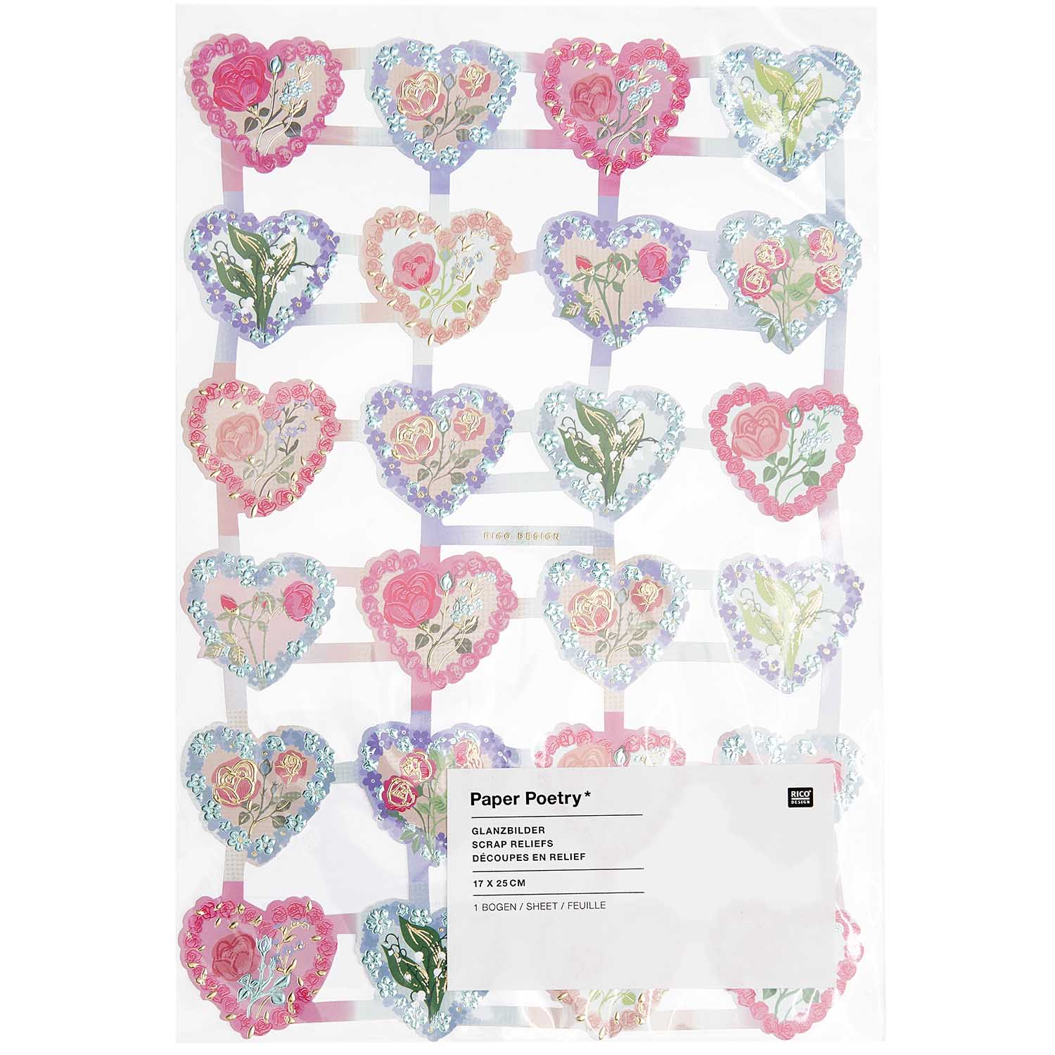 Paper die-cut sheet, 24 pastel colored floral patterned gloss photos. Sheet size 17 x 25 cm. Rico Design, Paper Poetry.