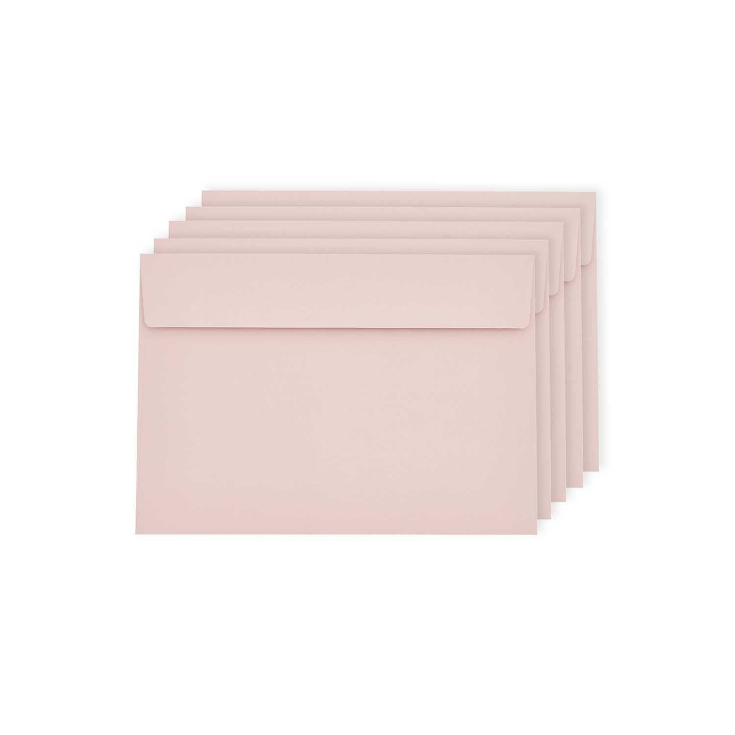 Rico Design Paper Poetry Luxury envelopes, 5 pcs in a pack. The C6 (162 x 114 mm) envelopes are made of high-quality 100 g/m2 paper. The envelope has a straight flap and a ready-to-glue surface. The shade of this FSC certified paper is pink.