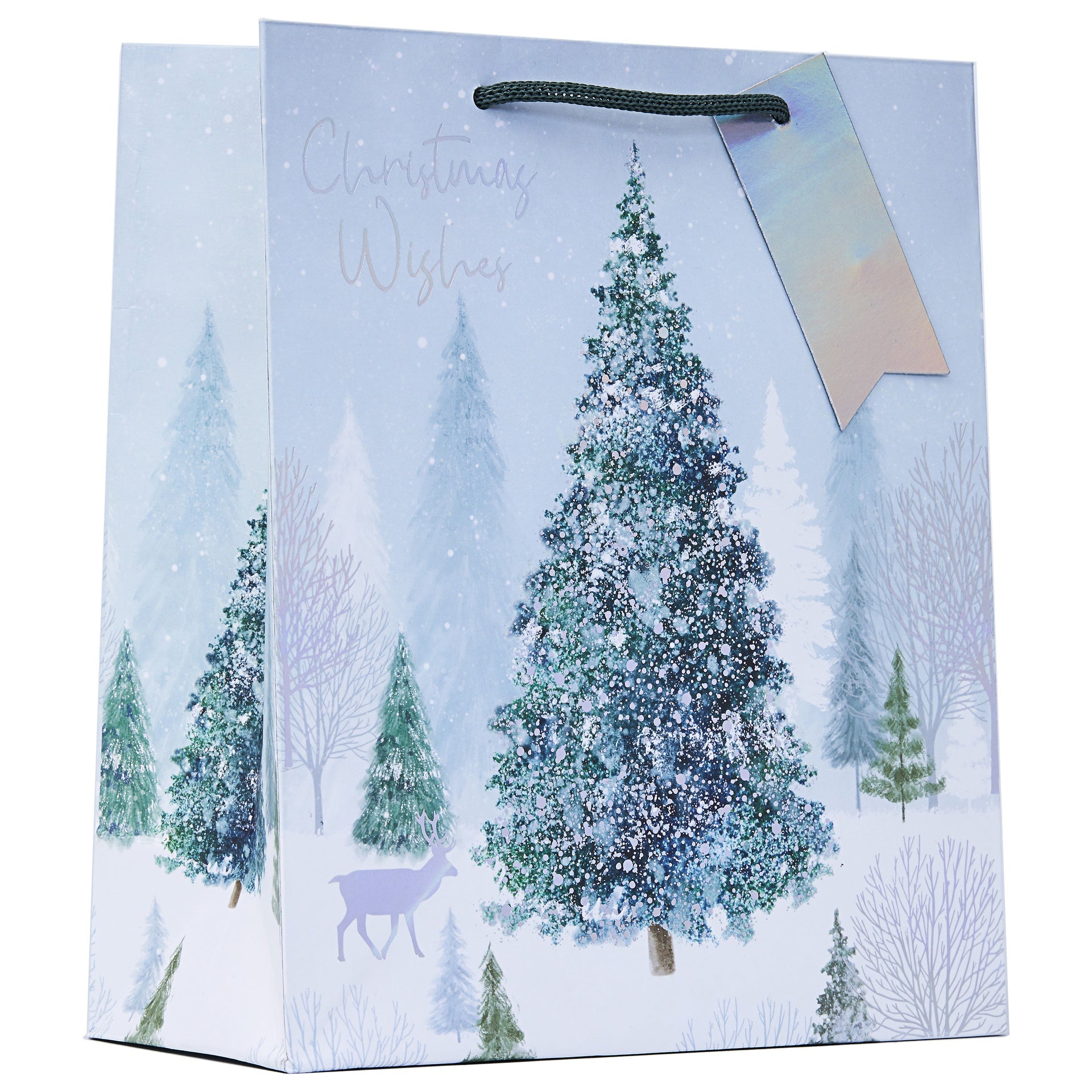 Gift bag Frozen Forest. Silver foil. Size medium, height 253 mm x width 215 mm x depth 102 mm. Design: Partisan.
