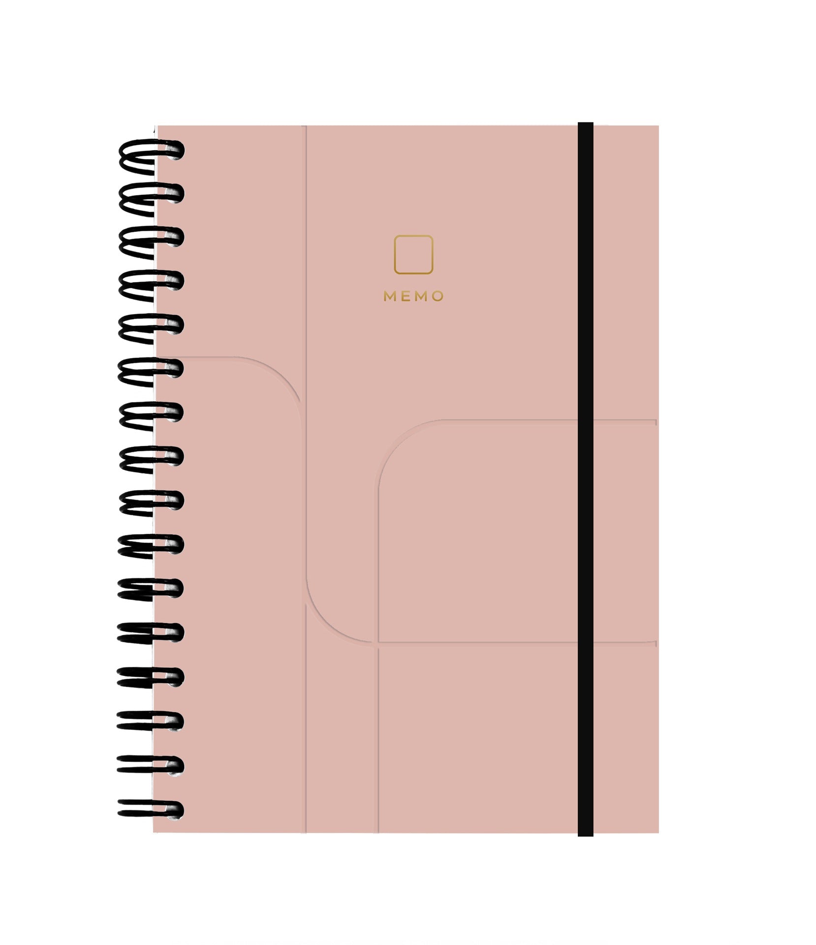 Hardcover notebook. Size A5 (15 x 21 cm). Spiral spine. Cover: Silk, soft touch lamination. Gold foil and debossing on the cover. Colored inner covers. Blank pages, 192 pages. Paper: Munken Lynx 120 g. Rubber band closure. Design: Putinki Priima.