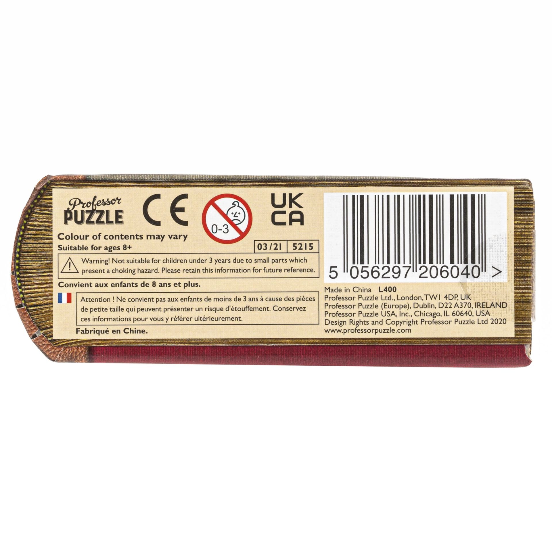 Professor Puzzle's puzzle library contains many book classics in puzzle form. The 252-piece puzzle, packaged in a beautiful book-shaped box, is double-sided. One side features a picture of the book cover and the other side features a page of text from the book. This puzzle is the perfect gift for a bookworm and book lover. The finished puzzle measures 24 x 37 cm when assembled. The box measures 11.5 x 16.5 x 4 cm. Recommended age 8+. Not suitable for children under 3 years old, the game contains small parts.