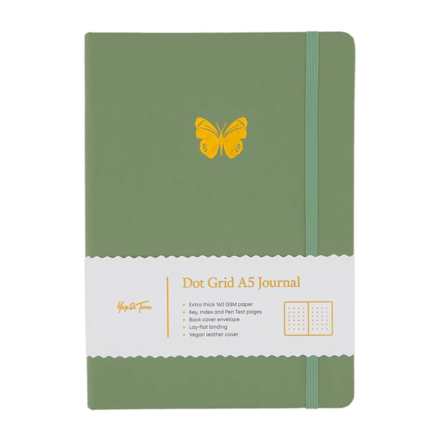 Dotted notebook A5 Yop & Tom - Butterfly, Sage Green