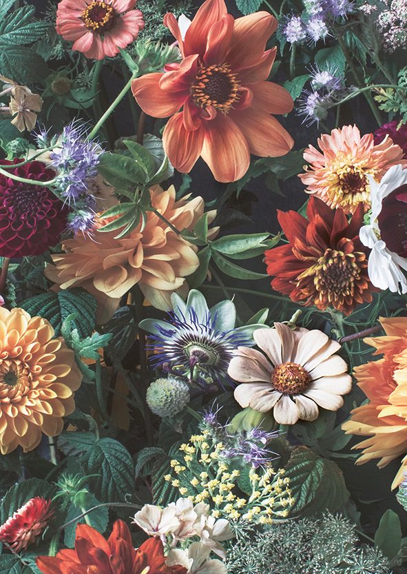 Postcard. Blank on the reverse side. Size 105 x 148 mm. Design: Kreetta Järvenpää. The depicted flowers have been grown in Finland in accordance with the Slow Flowers ideology. Printed in Finland.