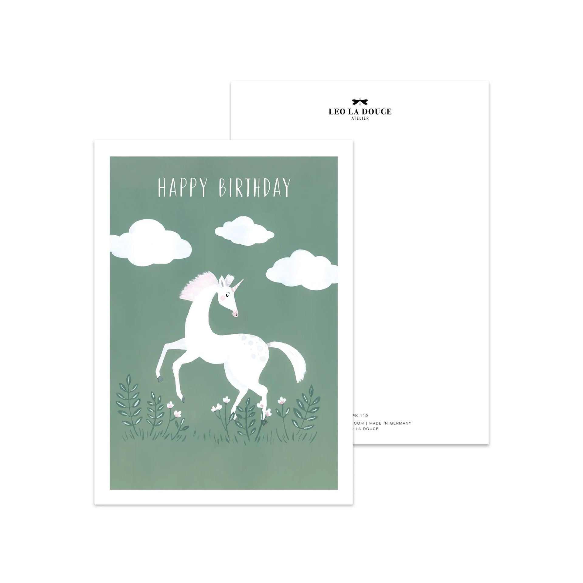 Postcard Leo la Douce - Happy Birthday Unicorn