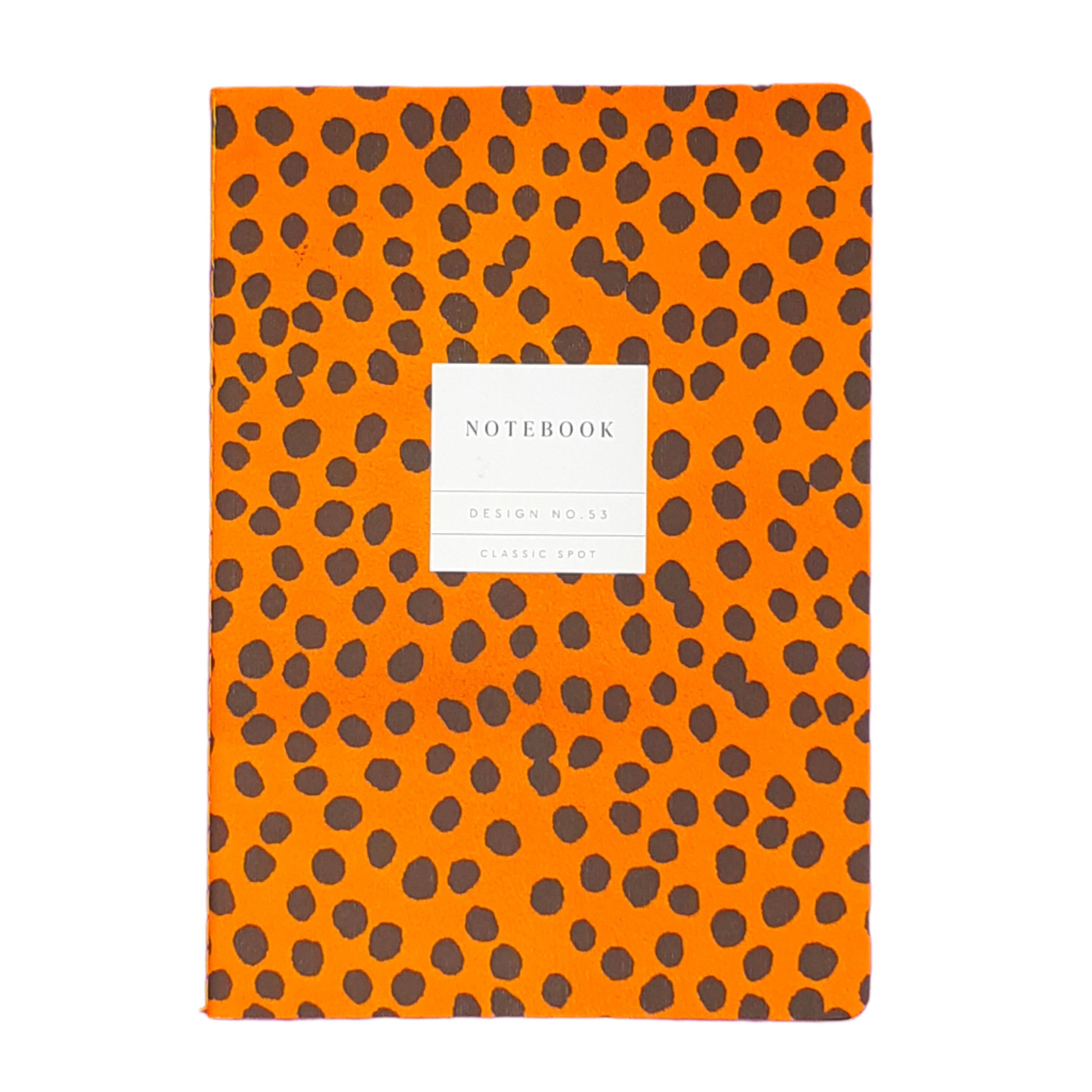 Ohh Deer notebook with a colorful printed leopard-themed cover. The notebook has a beautiful stitched binding and 56 lined pages. The cover has the text "Notebook" and the design number and name. The size is A5 (135x 190 mm). Design: Ohh Deer.
