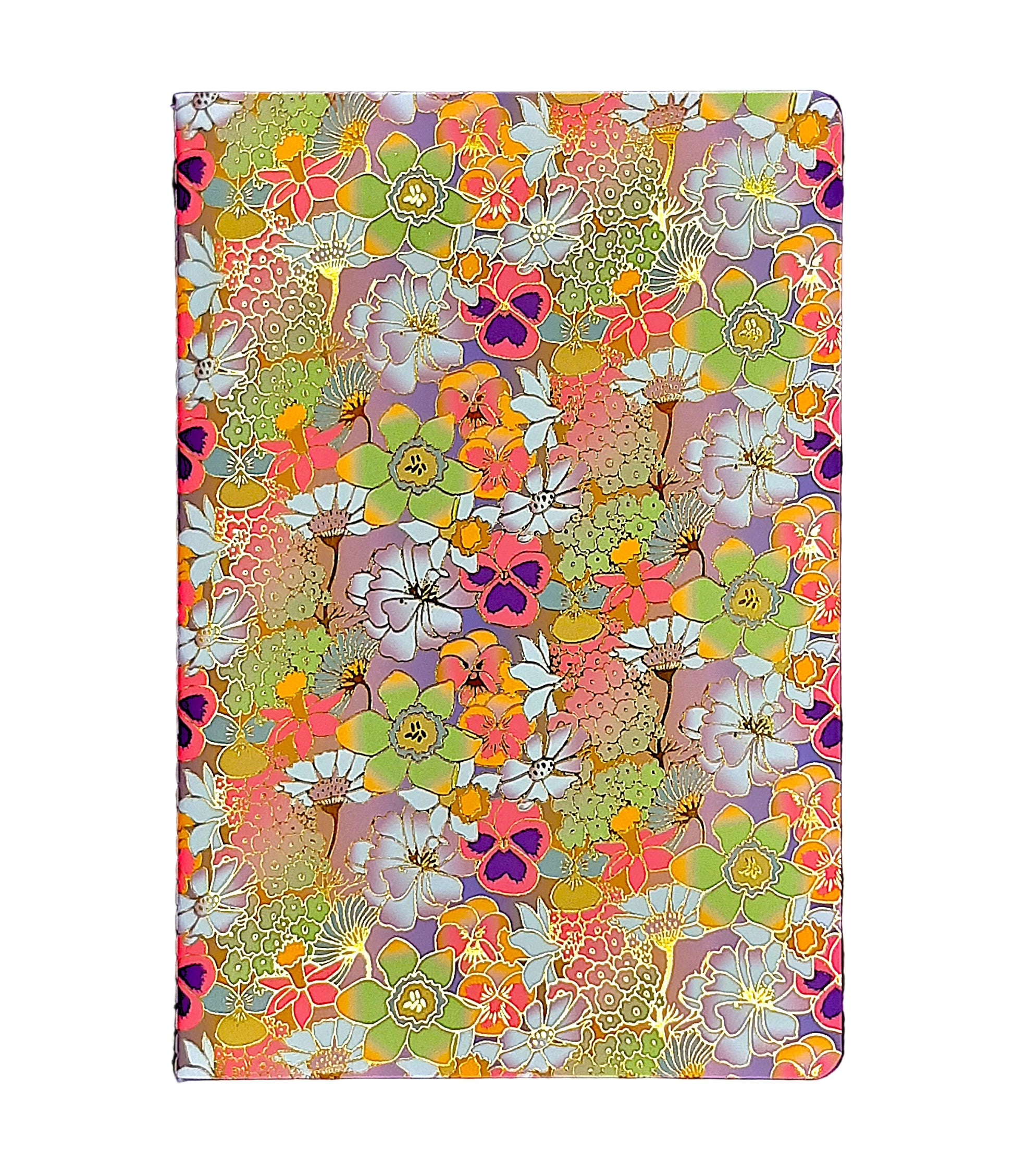 Rico Design Paper Poetry notebook with a colorful floral design on the cover with gold details. Size A5 (145 x 210 mm), dotted pages.