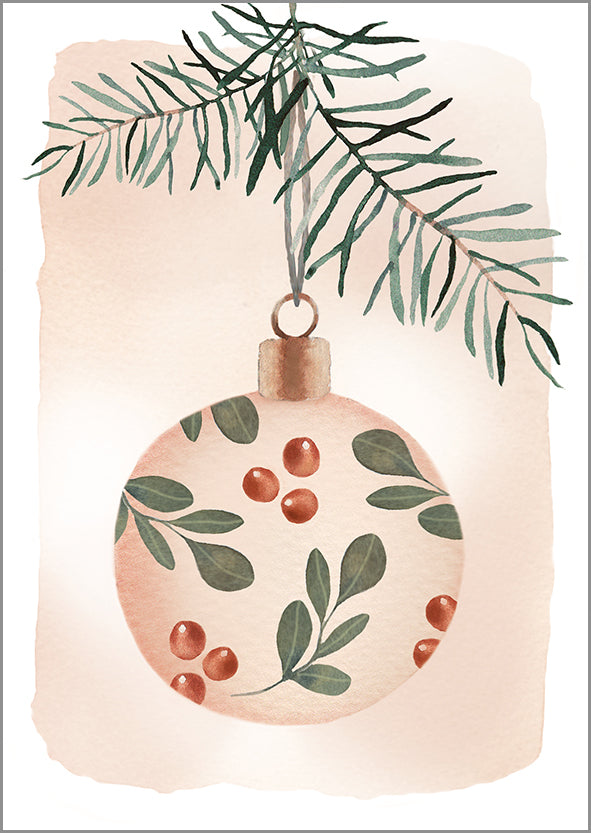 Kotimainen 2-osainen Putinki joulukortti, laadukasta kartonkia, sisältää valkoisen kirjekuoren. Kortissa on kuva kauniista koristeellisesta joulupallosta. Kortti on tyhjä sisältä. Henna Adelin herkät ja ainutlaatuiset kuvitukset ilahduttavat ja saavat joulumielen heräämään. Koko 105 x 148 mm. Kuvitus: Henna Adel. Painettu Suomessa.