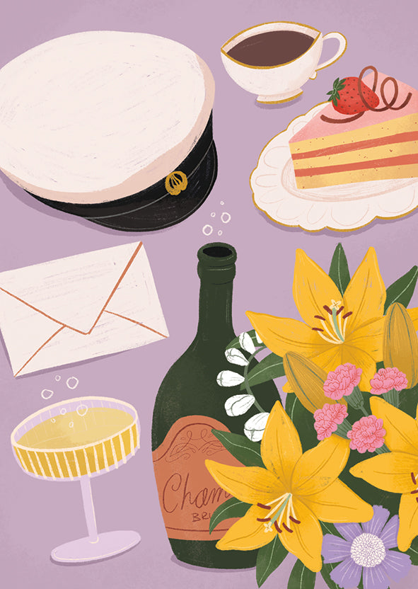 2-osainen kortti Kaisu Sandberg - Yo-lakki, kakkupala ja kukat