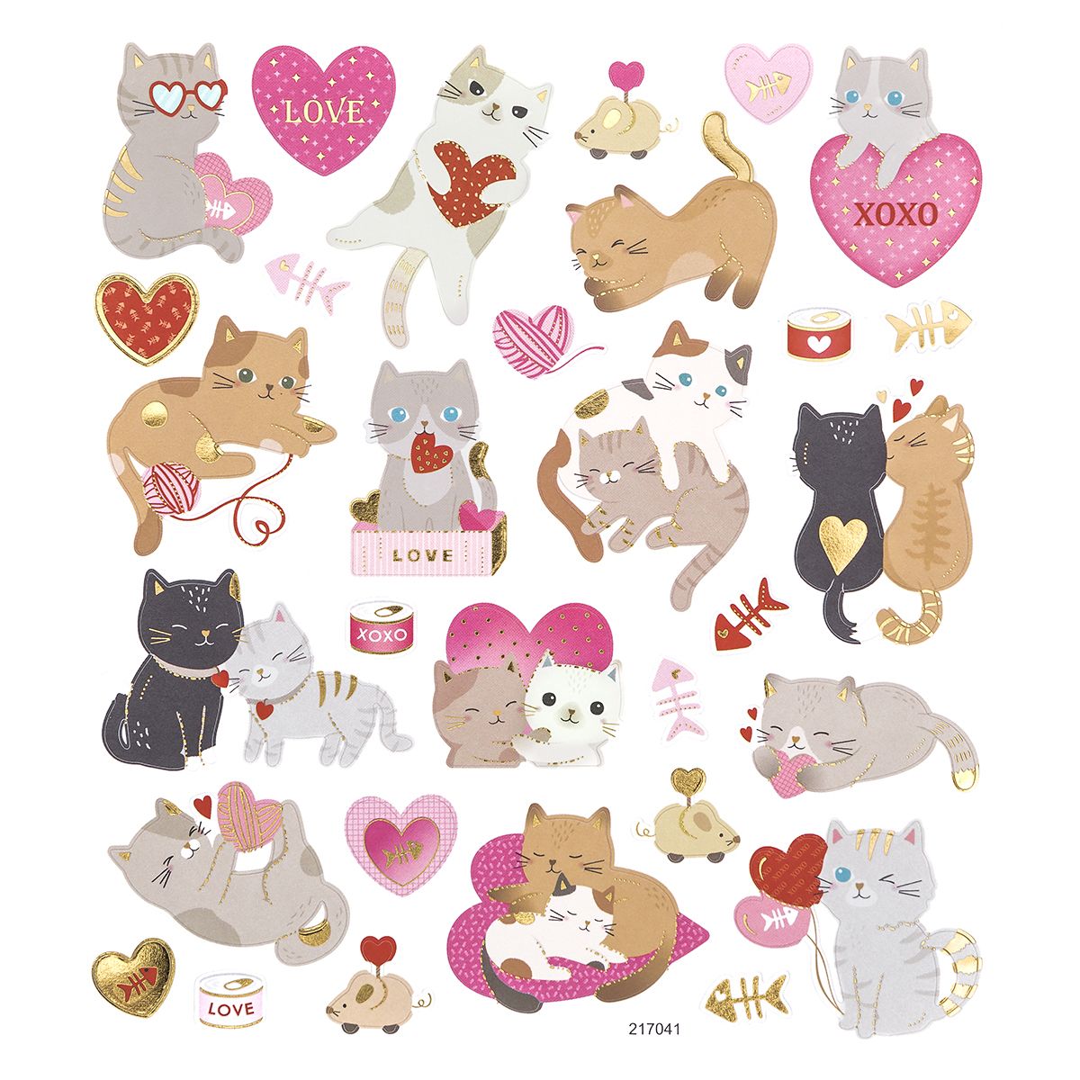 Hauskojen kissanpentujen muotoiset kullatut paperitarrat. Ne sopivat täydellisesti scrapbooking-projektien, onnittelukorttien ja lahjapakkausten koristeluun.