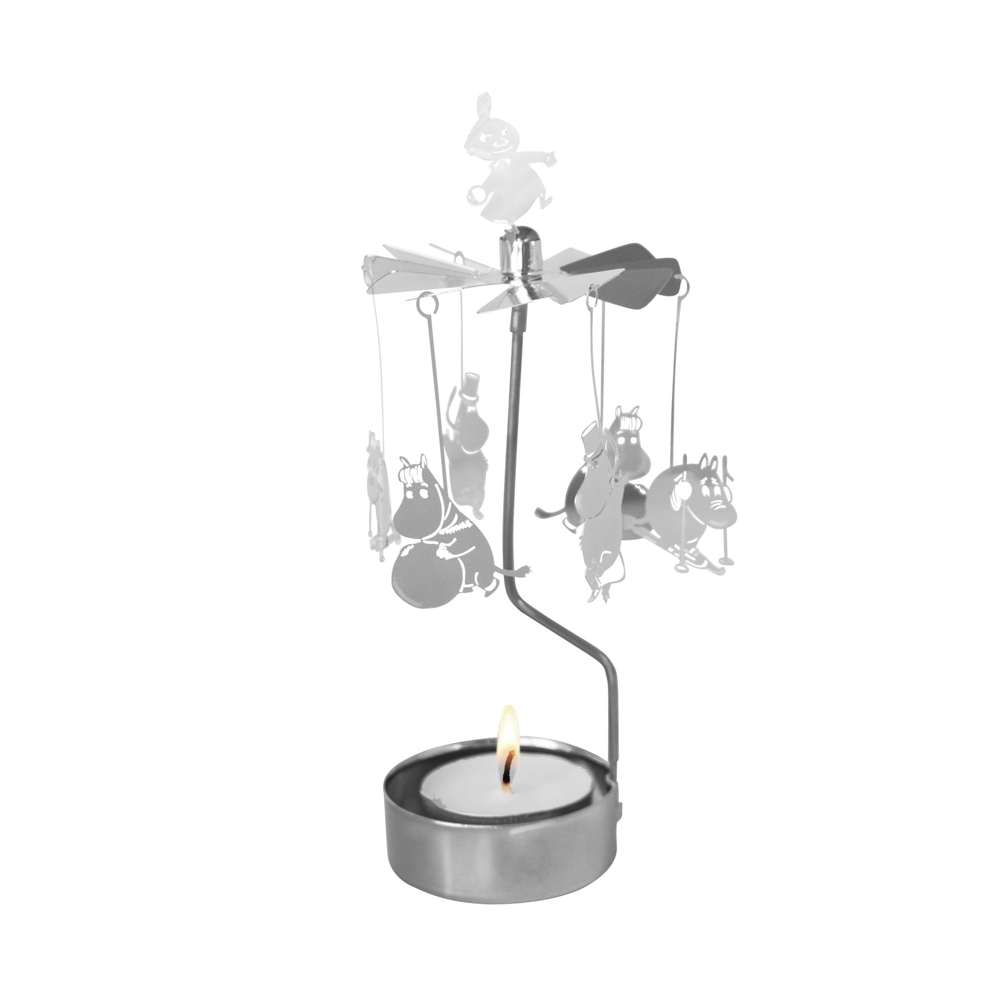 Enkelikello Muumi. Enkelikello hopeanväristä metallia, jossa on eri muumihahmoja, koko 160 x 65 x 65 mm. Ei sisällä tuikkukynttilää. Kaunis lahjarasia. Design: Pluto Design.