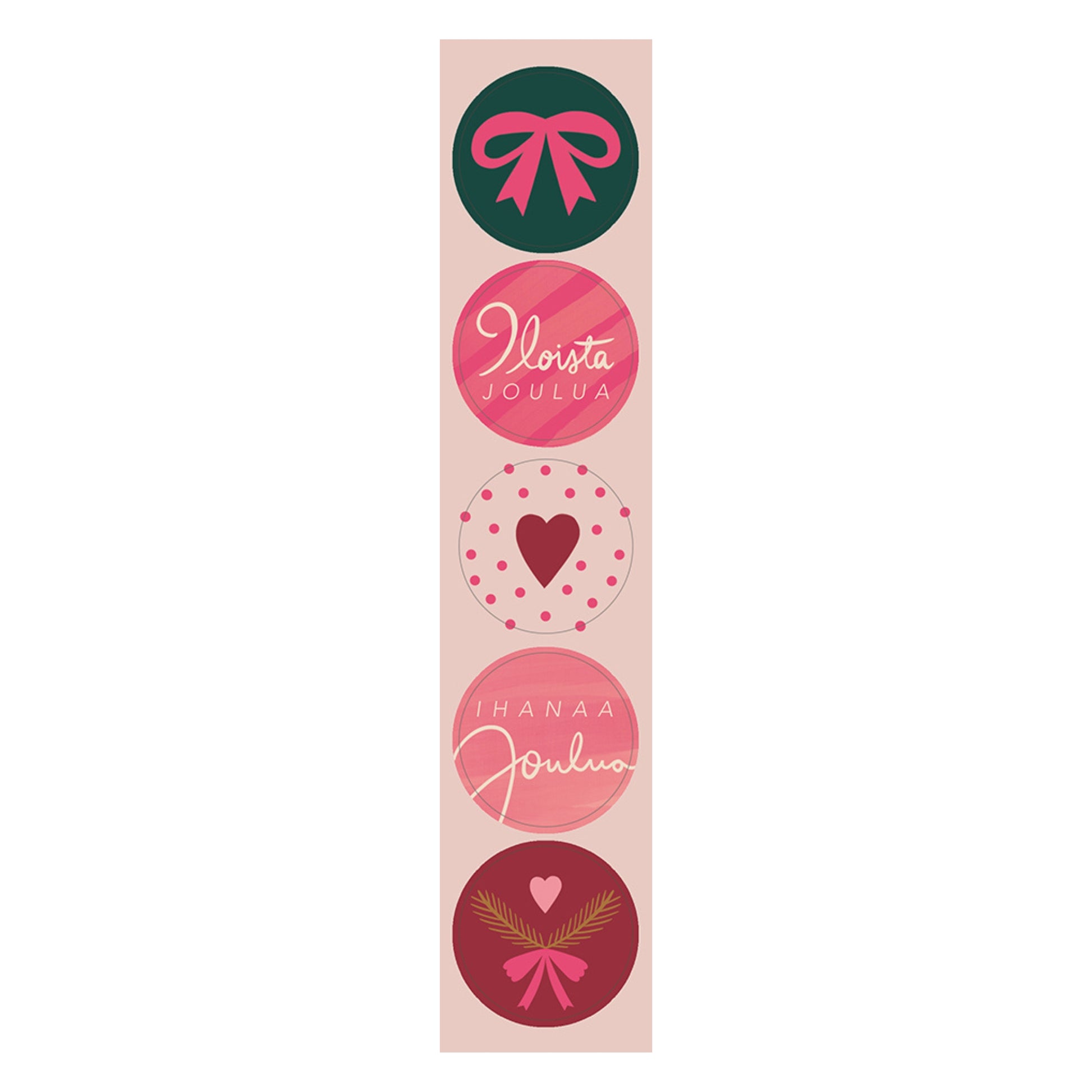 Pakkaus sisältää 2 arkkia pyöreitä joulutarroja. Design: Putinki Letters.