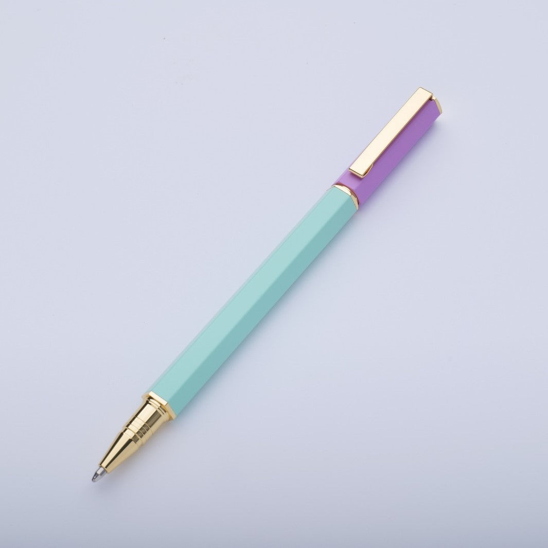 Kynässä on kuusikulmainen muoto ja pirteä väritys, luoden upean kontrastin. Kätevän klipsin avulla kynä pysyy tallessa muistikirjan kannessa, taskussa tai kansiossa.