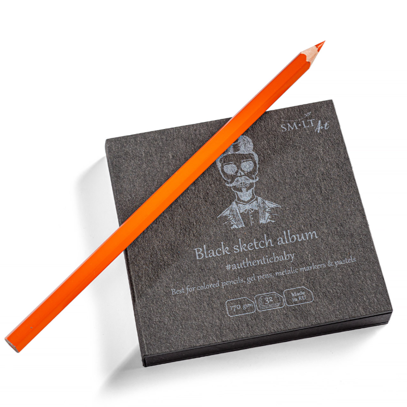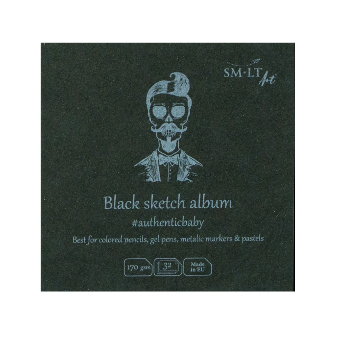 Luonnoslehtiö hieman teksturoidulla mustalla paperilla. Sopii parhaiten värikynille, geelikynille, metallinhohtoisille tusseille ja pastelleille. Sisäpaperi FSC-sertifioitua. Neliönmuotoinen, taskukokoinen, kovilla etu- ja takakannella. Koko 9x9 cm, paperi 170 gsm. Lehtiössä on 32 arkkia.