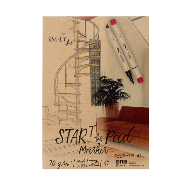 70 gsm tussilehtiö, jossa pehmeät valkoiset arkit ja kova selkämys. 20 arkkia. Soveltuu parhaiten geelikynille ja markereille. Toinen puoli arkista on päällystetty eli läpivuotamaton. Kansi valmistettu 100 % kierrätysmateriaaleista. Hapoton, pH-neutraali paperi. SM-LT:n StarT-tuoteperhe soveltuu mainiosti nousevien tähtien, koululaisten, opiskelijoiden ja taideharrastusta aloittelevien käyttöön. SM-LT on yritys, joka kannattaa vihreitä arvoja ja sosiaalista vastuuta sekä kestävää kehitystä. Euroopassa sijaitseva tehdas tuottaa SM-LT tuoteperheen tuotteet kierrätysmateriaaleista ja nopeasti uusiutuvasta FSC-puuaineksesta. SM-LT kantaa vastuuta myös yhteiskunnallisella ja sosiaalisella tasolla. Yritykselle myönnettiin FSC ®-sertifikaatti vuonna 2017. (FSC-C133807). Forest Stewardship Council® on maailmanlaajuinen, riippumaton, voittoa tavoittelematon ja monia sidosryhmiä sisältävä organisaatio, joka perustettiin vuonna 1993 vastuullisen metsänhoidon edistämiseen maailmanlaajuisesti ympäristö-, sosiaali- ja talouskysymyksiin liittyen.