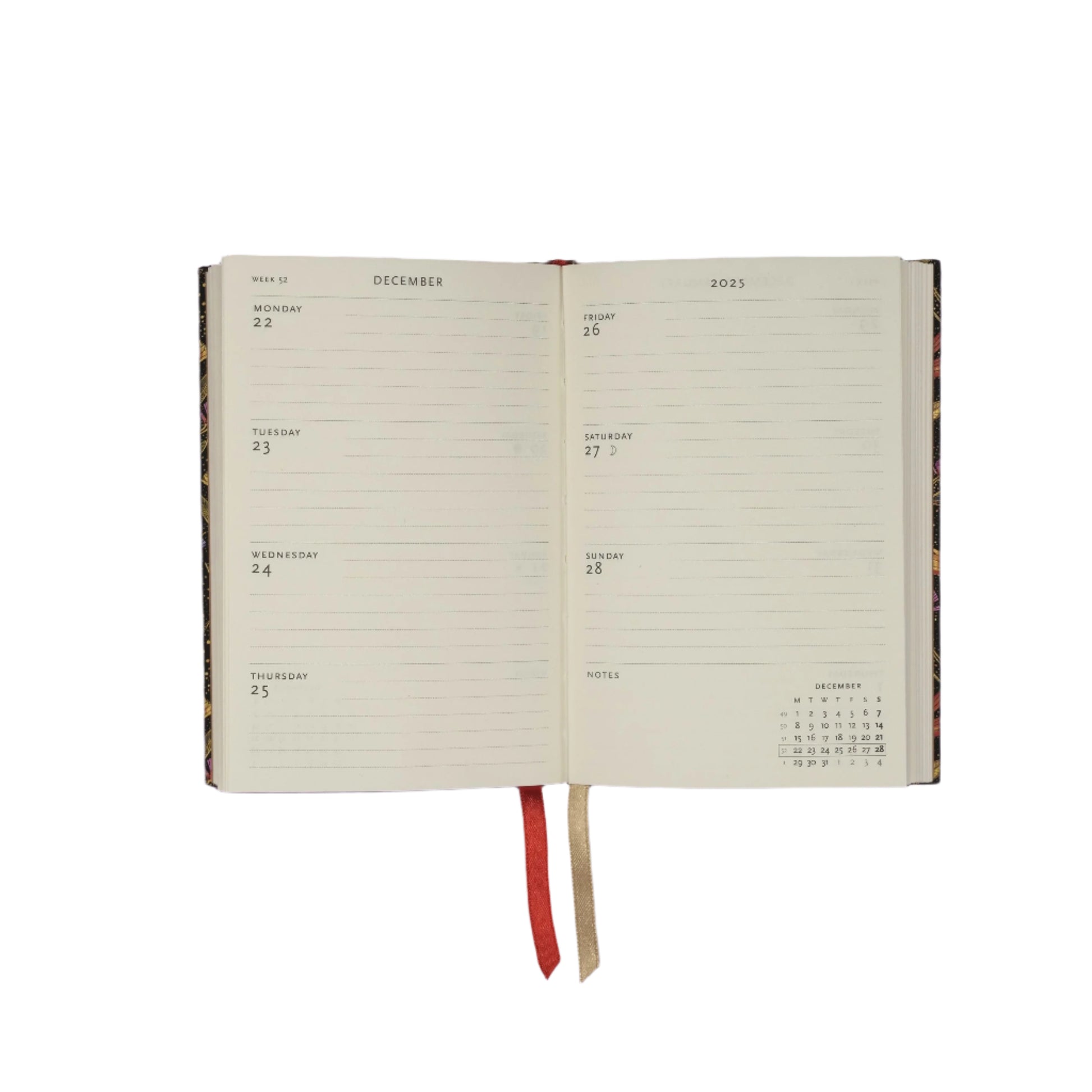 Paperblanks viikkopäivyri, 18 kk heinäkuu 2025 - joulukuu 2026, Viikko per aukeama, päivät vaakasuunnassa, 208 sivua, Koko: 95 x 140 mm (mini), Kieli: Englanninkielinen, kaksi lukunauhaa, säilytystasku, kuminauhasuljenta.