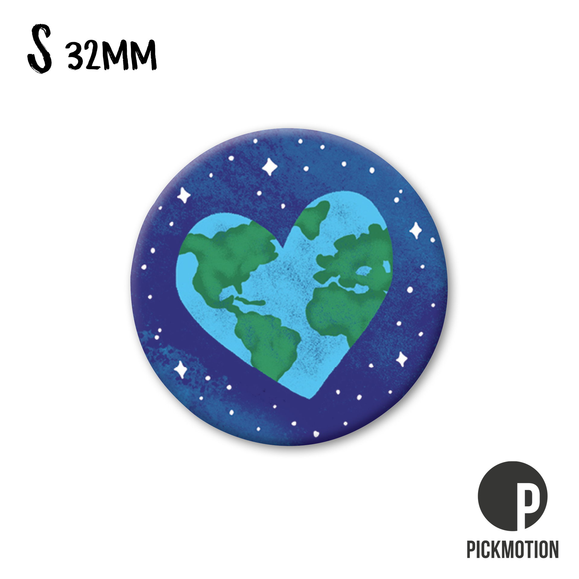 Laadukas mattapintainen Pickmotion-sisustusmagneetti jääkaapin oveen tai magneettiseen muistitauluun. Magneetissa kuva sydämen muotoisesta maasta leijumassa avaruudessa. Koko S, 32mm. Design: Pickmotion.
