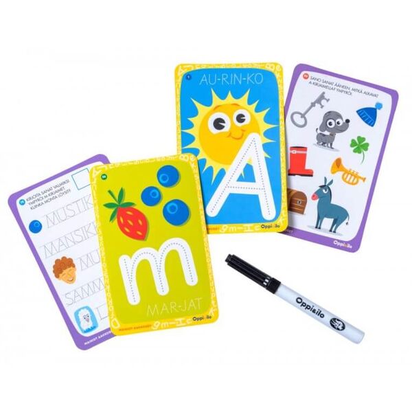 Oppi&ilo Mainiot aakkoset -puuhakortit tarjoavat hauskan ja monipuolisen tavan tutustua suomen kielen aakkosiin. Kestäville korttipohjille painetut värikkäät tehtävät tukevat kirjainten tunnistamista, äänteiden yhdistämistä sekä lukemaan oppimisen ensivaiheita. Mukana on myös ohjeita aakkosleikkeihin, jotka kehittävät kielellisiä valmiuksia ja tukevat varhaista oppimista. Kortit kulkevat mukana tukevassa rasiassa – täydellinen kotiin, päiväkotiin tai matkoille!