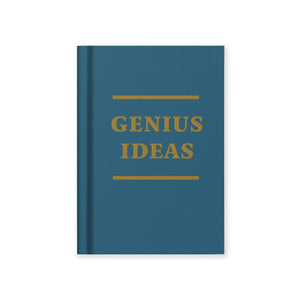 Kovakantinen Ohh Deer-muistikirja, kannessa englanninkielinen teksti "Genius Ideas". Tummansininen kangaspintainen kansi. Muistikirjassa on 112 viivoitettua sivua, koko A7 (84 x 112 x 15 mm). Design: Ohh Deer.