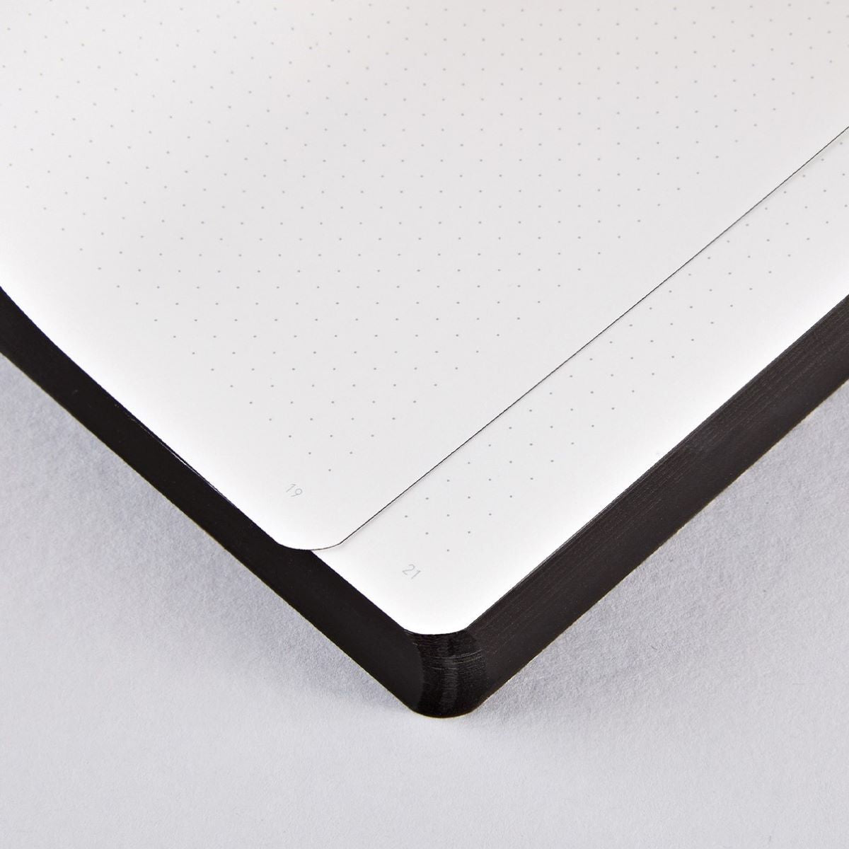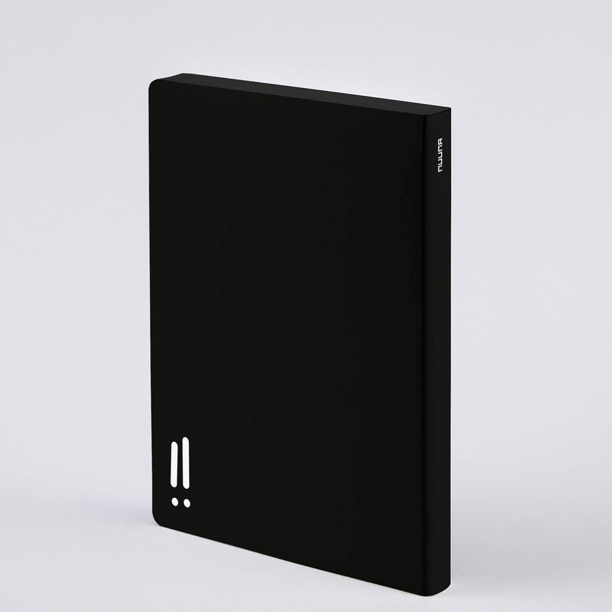 Pehmeäkantinen muistikirja pistesivuilla, kannet kierrätysnahkaa. Kannessa silkkipainettu kuva ja mustat sivujen reunat. Koko: 165x220 mm (A5). 256 sivua, sivunumerointi. Nuuna-muistikirjoissa on käytetty 120g laadukasta paperia kestävästi hoidetuista metsistä ja sidonta on tehty niin, että kirja aukeaa hyvin ja pysyy avattuna pöydällä. Painovärit ovat peräisin kasviöljyistä. Pistegridi muodostaa sivulle "apuviivaston" joka mahdollistaa vapaan kirjoittamisen, luonnostelun ja piirtämisen. Vaaleanharmaat pisteet, pisteiden väli 3,5mm.