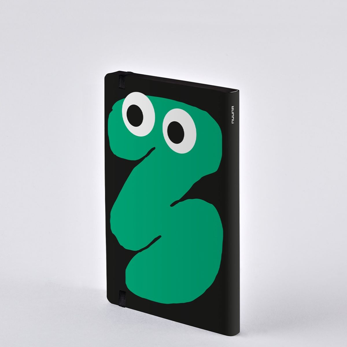 Pehmeäkantinen muistikirja pistesivuilla, kannet kierrätysnahkaa. Kannessa silkkipainettu kuva ja mustat sivujen reunat. Koko: 135x200 mm. 176 sivua, sivunumerointi. Nuuna-muistikirjoissa on käytetty 120g laadukasta paperia kestävästi hoidetuista metsistä ja sidonta on tehty niin, että kirja aukeaa hyvin ja pysyy avattuna pöydällä. Painovärit ovat peräisin kasviöljyistä. Pistegridi muodostaa sivulle "apuviivaston" joka mahdollistaa vapaan kirjoittamisen, luonnostelun ja piirtämisen. Vaaleanharmaat pisteet, pisteiden väli 3,5mm.