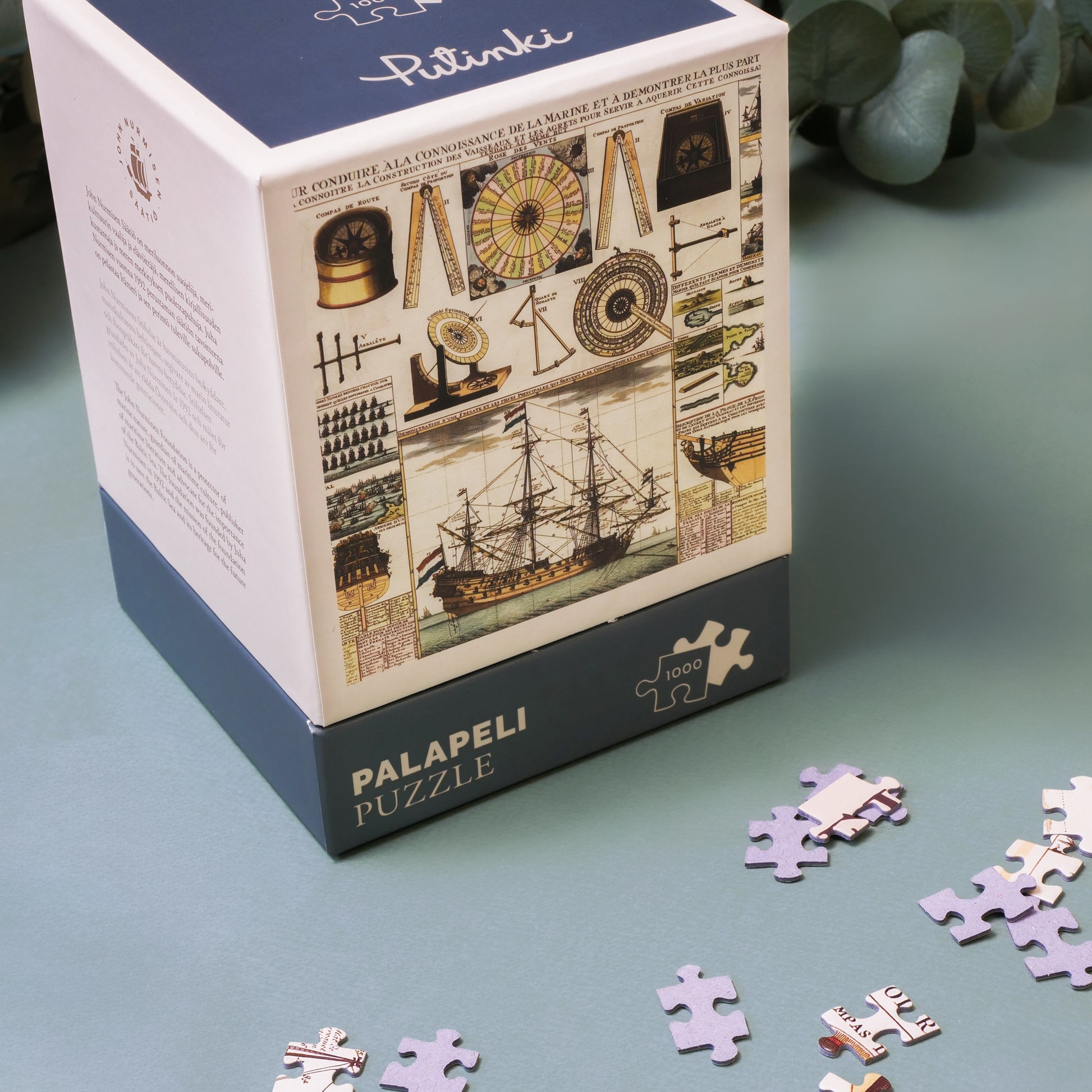Tässä 1000 palan meriaiheisessa palapelissä on kuva merenkulkua käsittelevästä vanhasta kirjasta, John Nurmisen säätiön kokoelmista. John Nurmisen Säätiö on meriluonnon suojelija, merikulttuurin vaalija ja elävöittäjä, merellisen kirjallisuuden kustantaja ja meren merkityksen puolestapuhuja. Säätiön tavoitteena on pelastaa Itämeri ja sen perintö tuleville sukupolville. Juha Nurmisen vuonna 1992 perustaman säätiön kokoelmat sisältävät merenkulun, löytöretkeilyn ja kartografian historiaan painottuvaa esineistöä, kuten antiikkikarttoja, meritaidetta ja meriantiikkia.