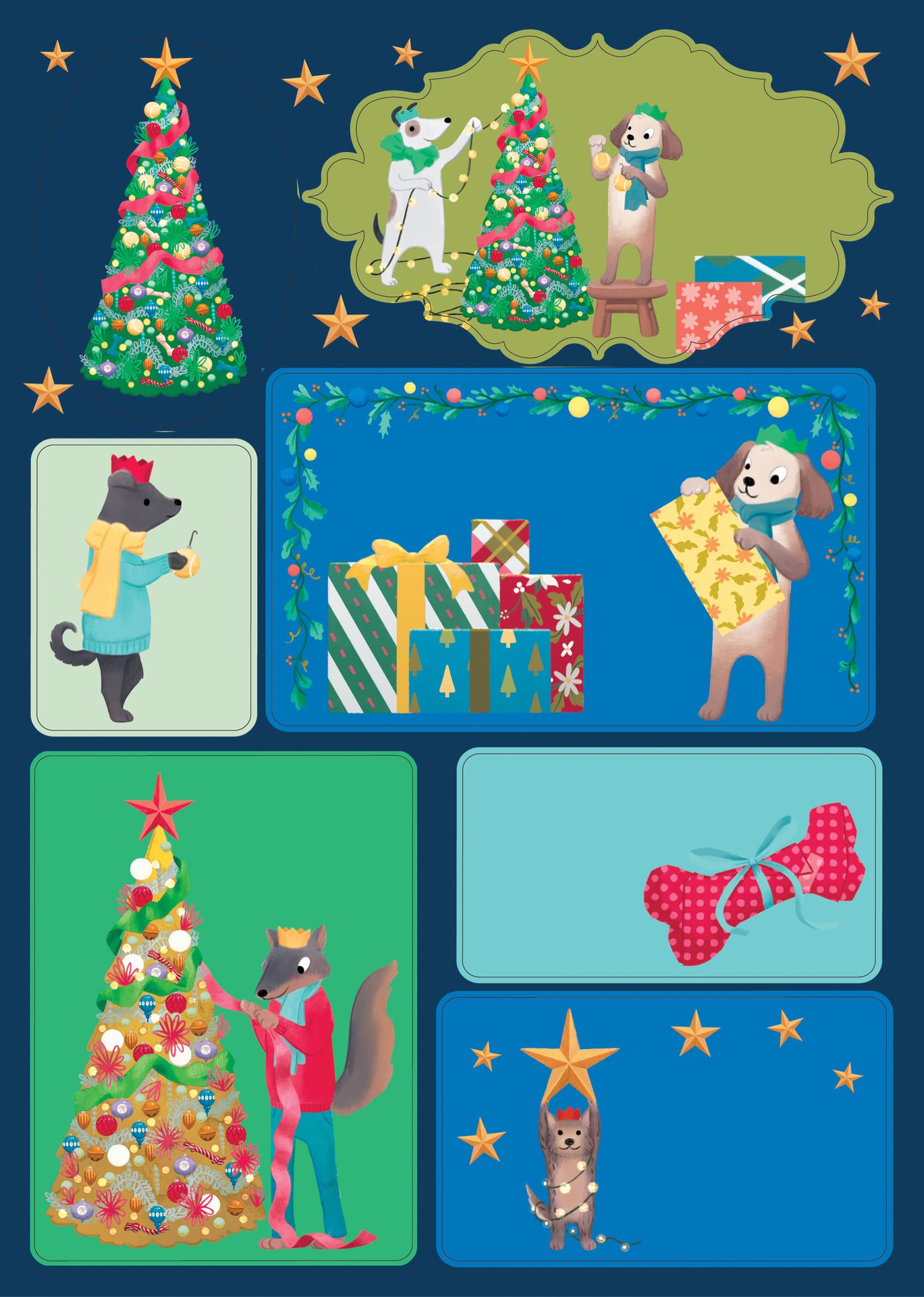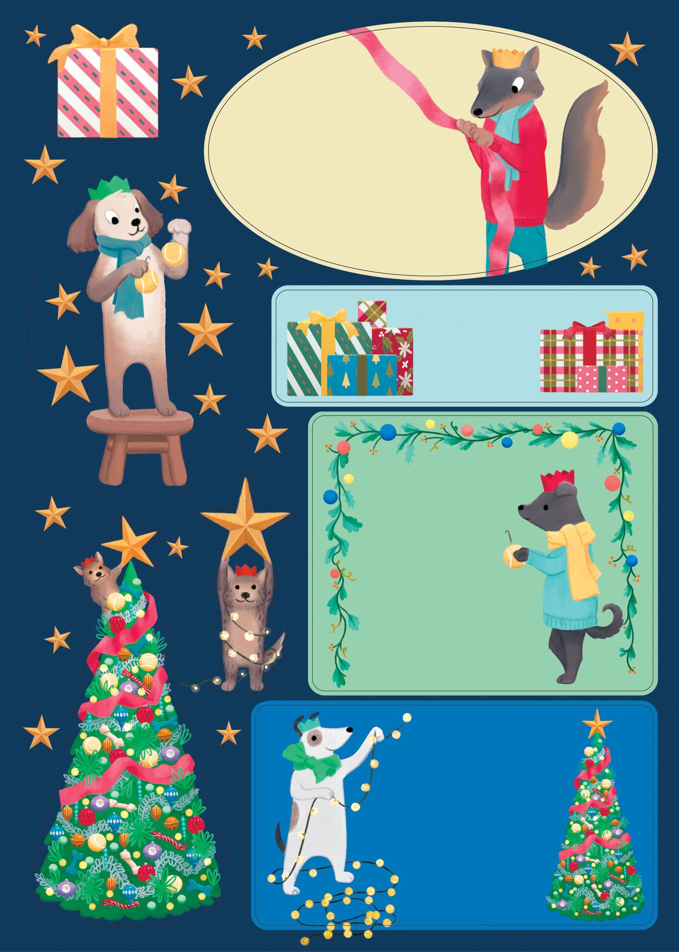 Pakkaus sisältää kaksi arkkia joulupakettitarroja, koira-aihe. Täydellisiä jouluisiin paketteihin! Arkin koko 148 x 210 mm. Design: Roger la Borde.