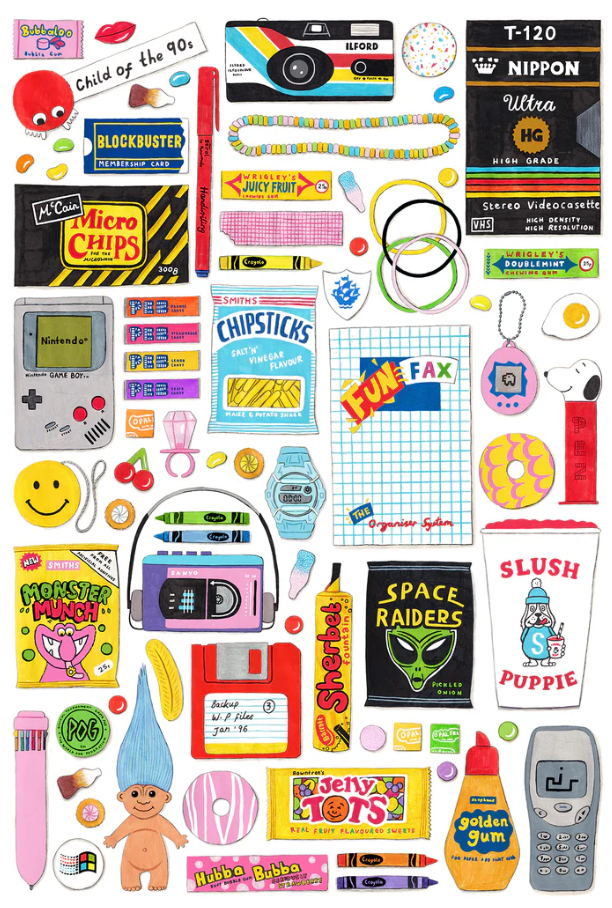 Tiedätkö sen tunteen, kun saat viimeisen palapelin palan paikoilleen? Me rakastamme sitä tunnetta ja aivomme rakastavat sitä myös. Englantilainen Happily Puzzles tekee värikkäitä, kollaasityylisiä palapelejä, jotka antavat sinulle sen tyydyttävän viimeisen palan tunteen monta kertaa. Palapelikuvituksissa on käytetty palkittuja kuvittajia ja suunnittelijoita. Koska palapelien pitäisi näyttää hyvältä. Tietenkin. 1000 palan palapeli "In the 90's" on Holly Maguiren kuvittama ja sen koko on koottuna 68 x 48,5cm. Happily Puzzles -palapelit on valmistettu Hollannissa ja niissä käytetään vain kestävästi hankittua paperia, 100% kierrätettyä kartonkia ja kasvipohjaisia musteita.