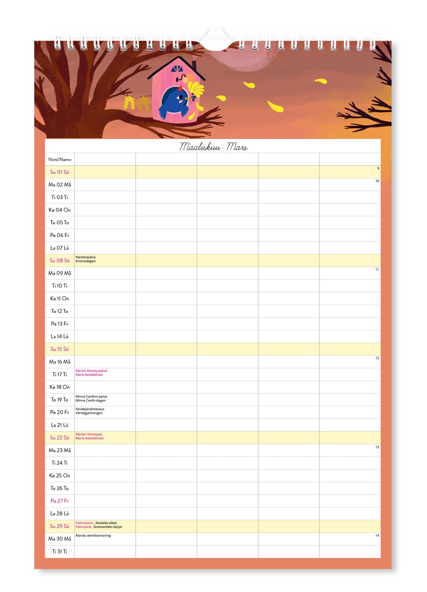 Perhekalenteri 23x34 cm 2026 Putinki Mallius