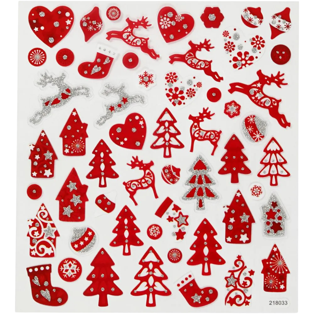 Arkillinen jouluisia tarroja koristeluun. Arkin koko 15,5 x 21 cm.