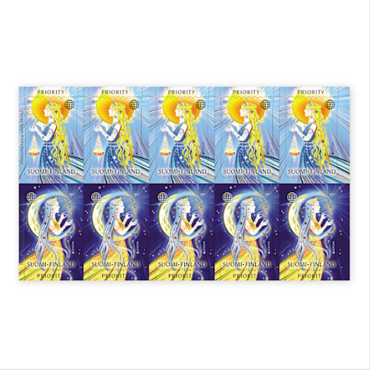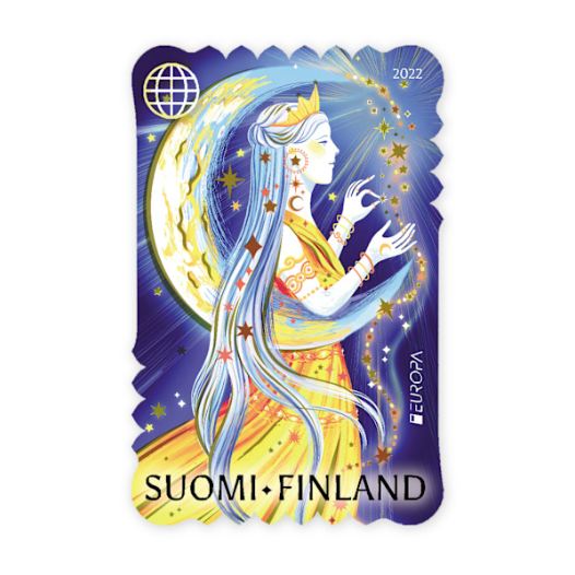 Posti esittelee ulkomaan ikimerkeissään kaksi jumalatarta, jotka mainitaan mm. kalevalaisissa runoissa. Päivätär ja Kuutar kehräävät muotoonleikatuissa postimerkeissä auringon ja kuun hohteesta kulta- ja hopealankaa, josta kudotaan kultaisia ja hopeisia vaatteita.