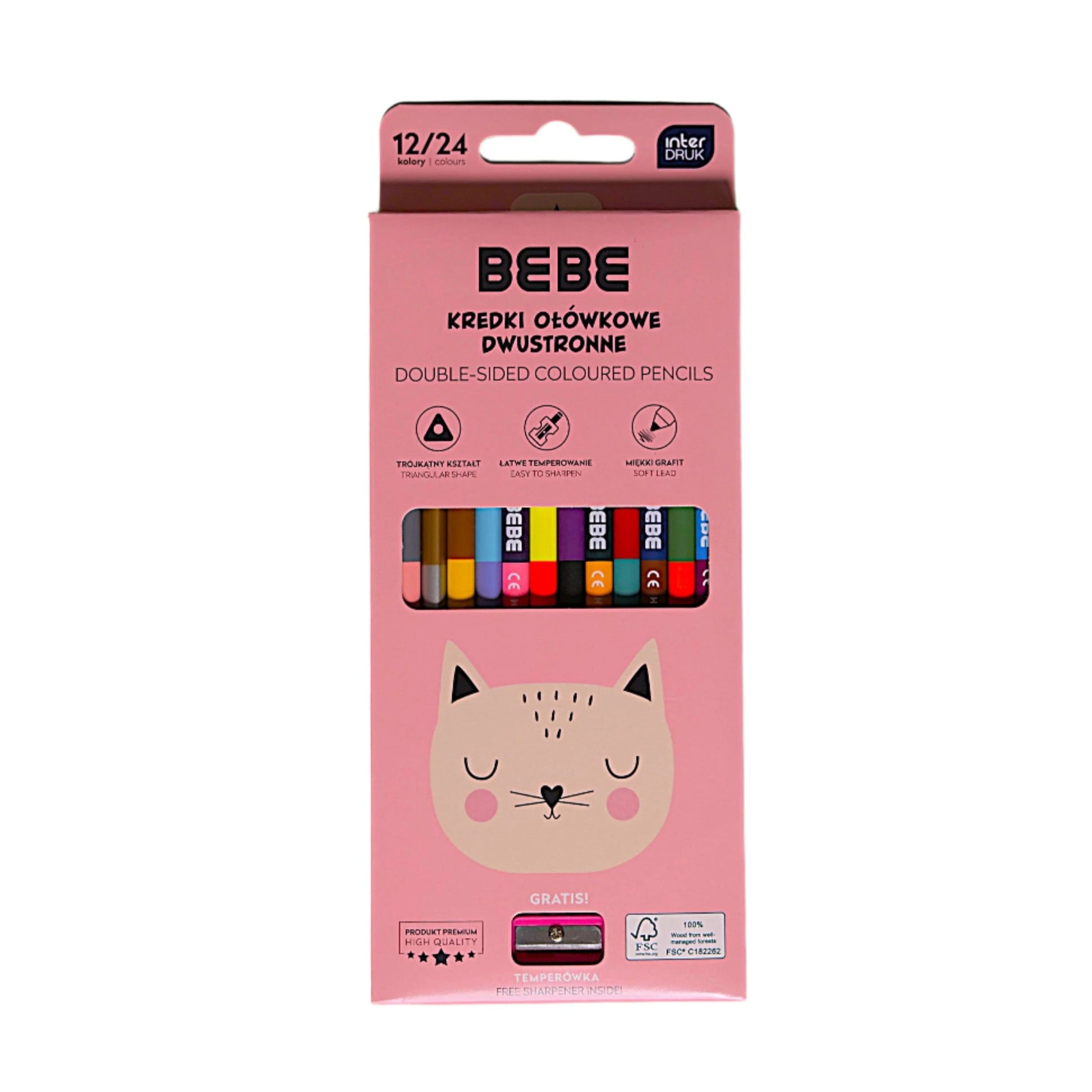 Bebe Friends -sarjan puuvärikynät. Kynä on kaksipuoleinen. Pakkauksessa on 12 kynää ja teroitin, yhteensä 24 eri väriä.