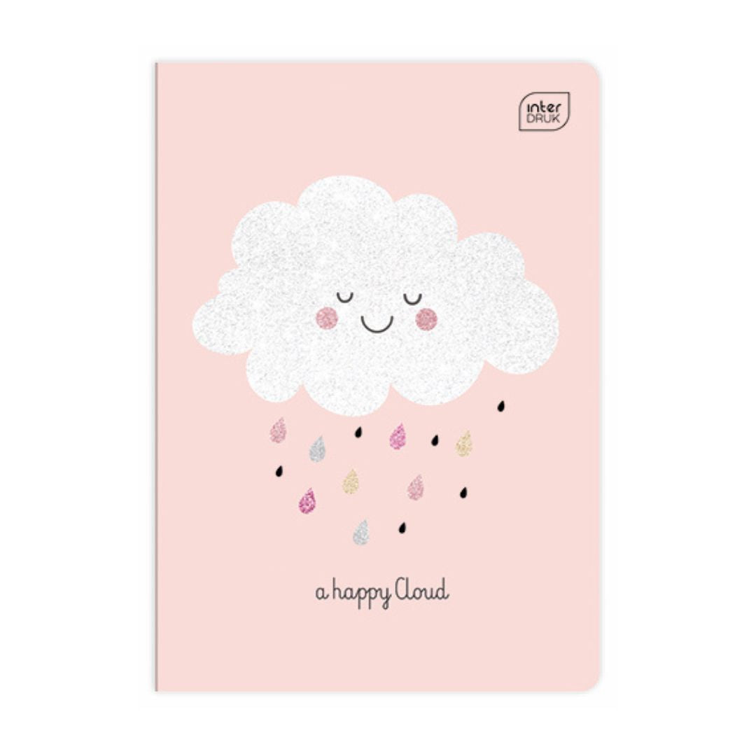 A5 -kokoinen ruutuvihko, jossa on 32 sivua. Paperin vahvuus 70 g/m2. Kannessa pilven kuva koristeltuna glitterillä ja teksti: "A happy cloud". Osa Interdruk Sweet stationery -sarjaa.
