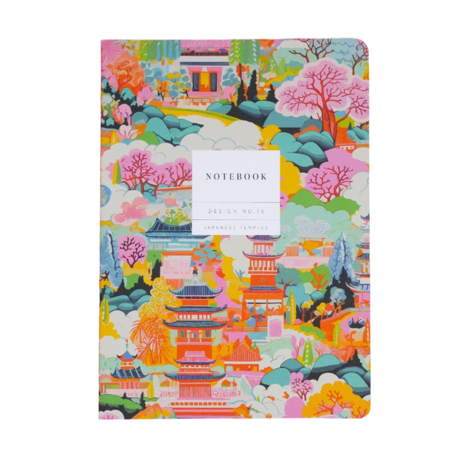 Ohh Deer -vihko värikkäällä painetulla kansikuvalla, jossa aiheena japanilaiset temppelit. Vihkossa on kaunis ommeltu sidonta ja 56 viivoitettua sivua. Kannessa teksti "Notebook" ja designin numero ja nimi. Koko on A5 (135x 190 mm). Design: Ohh Deer.