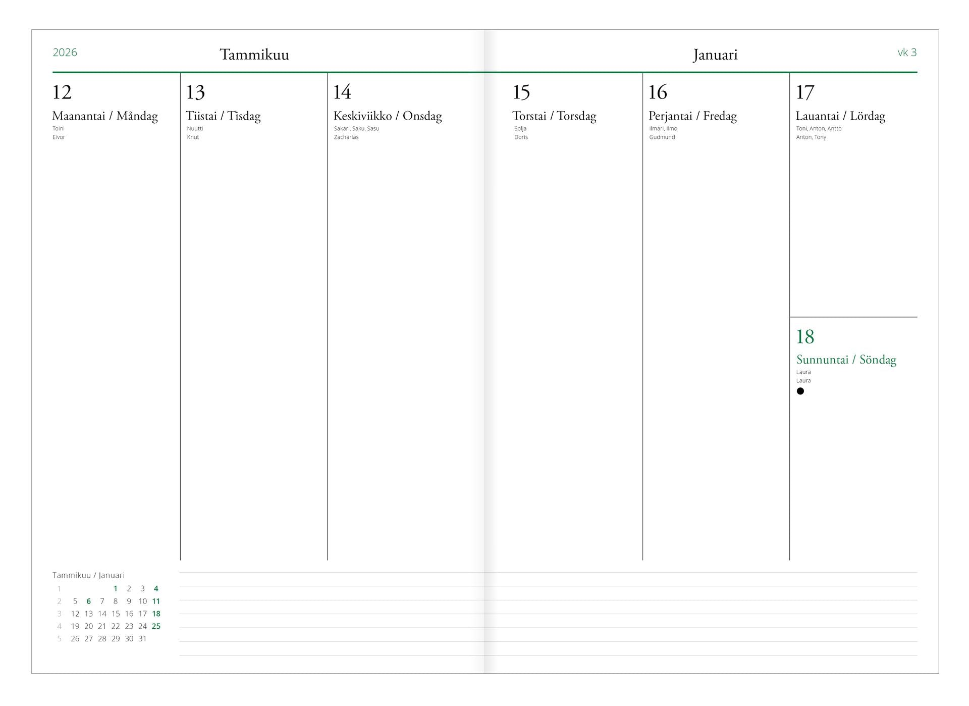 Viikkopäivyri A5 2026 Putinki Järvenpää