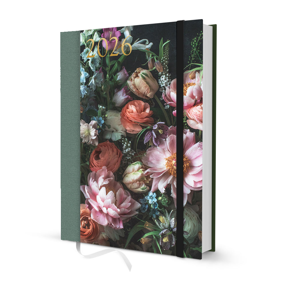 Kovakantinen viikkopäivyri vuodelle 2026, Kreetta Järvenpään kauniilla valokuvateoksilla kuvitettuna. Kannessa kultafolioitu vuosiluku. Kalenterin kannessa ja sisäsivuilla on valokuvaaja Kreetta Järvenpään tunnelmallisia kukkakuvia. Aukeamalla viikkonäkymä ja tilaa muistiinpanoille. Kirjalla on kangasselkä ja lukunauha, sekä takakannessa kätevä sisätasku. Koko 15 x 21,5 cm (A5). Kielet: suomi ja ruotsi. Sisältää suomalaiset ja suomenruotsalaiset nimi- ja liputuspäivät, sekä kuun vaiheet.