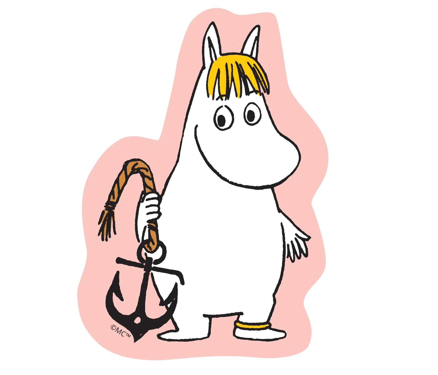 Vinyylitarra, jossa Niiskuneiti kädessään ankkuri. Vaaleanpunainen tausta. Koko noin 9 x 9 cm. Painettu Suomessa. © Moomin Characters™